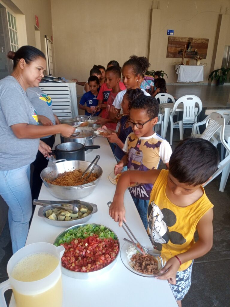 Atendemos cerca de 80 crianças e adolescentes, com idade entre 05 e 15 anos, em contra turno escolar. Nesse período, os assistidos recebem alimentação nutritiva e saudável (café da manhã, almoço, lanche da tarde e jantar), além de participarem de diversas atividades, oficinas socioeducativas, aula de dança, inclusão digital e acompanhamento pedagógico, despertando habilidades, motivando talentos e trabalhando a auto estima.